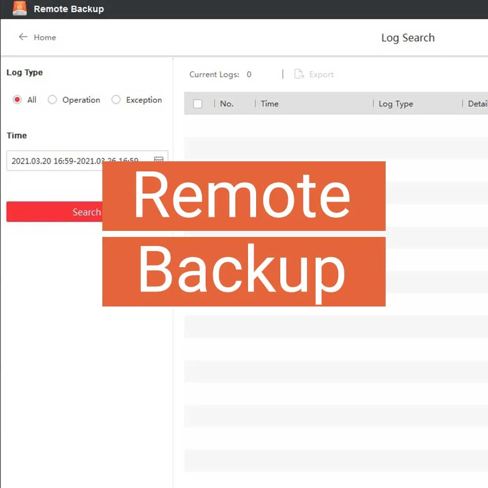 با استفاده از نرم افزار Remote Backup هایک ویژن می توانید از تمامی فایل های ذخیره شده در دستگاه هایک ویژن یا هارد خود بک آپ بگیرید. برای این منظور می توانید دستگاه(ها) را به نرم افزار اضافه کرده و قسمت منوی پشتیبان گیری را تنظیم کنید. سپس می توانید به صورت دستی از فایل ها بک آپ بگیرید و یا آنکه تنظیمات آن را در حالت خودکار قرار داده تا طبق برنامه ای که برای آن تعیین می کنید به صورت اتوماتیک کار پشتیبان گیری را انجام دهد.